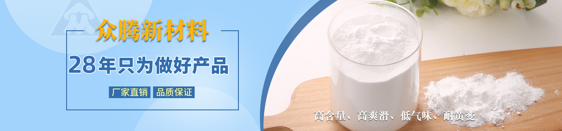 南通海門眾騰新材料科技有限公司與德國ZOTN公司合作,始建于1995年,地處長江三角洲與國際大都市上海隔江相望,座落于江蘇省南通市海門區(qū)。公司固定資產2000萬元,具備先進、齊全的科研設施,擁有一批已積累多年開發(fā)、技術應用經(jīng)驗的專業(yè)技術人員,同類產品采用目前國際先進的自動控制裝置。產品主要有芥酸酰胺、硬脂基芥酸酰胺、油酸酰胺、硬脂酸酰胺、塑料光亮劑、塑料抗靜電劑、EBS、EBO、開口劑等,廣泛應用于生物降解材料、母料、塑料、吹膜、PE粉末涂料、 油墨等行業(yè),年銷售量3000噸,出口量占60%。公司產品均已通過SGS綠色環(huán)保檢測,符合歐盟ROHS環(huán)保指令,并達食品、醫(yī)藥級要求。忠誠合作,和諧創(chuàng)造!讓我們攜手并進,共創(chuàng)美好明天!